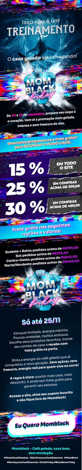 A MOMBAK vai entrar com tudo na semana mais caótica e gelada do ano. De 20 a 25 de novembro de 2025, rola a MOM BLACK FRIDAY — com descontos de até 30% + frete grátis e cupons exclusivos dos nossos influenciadores.